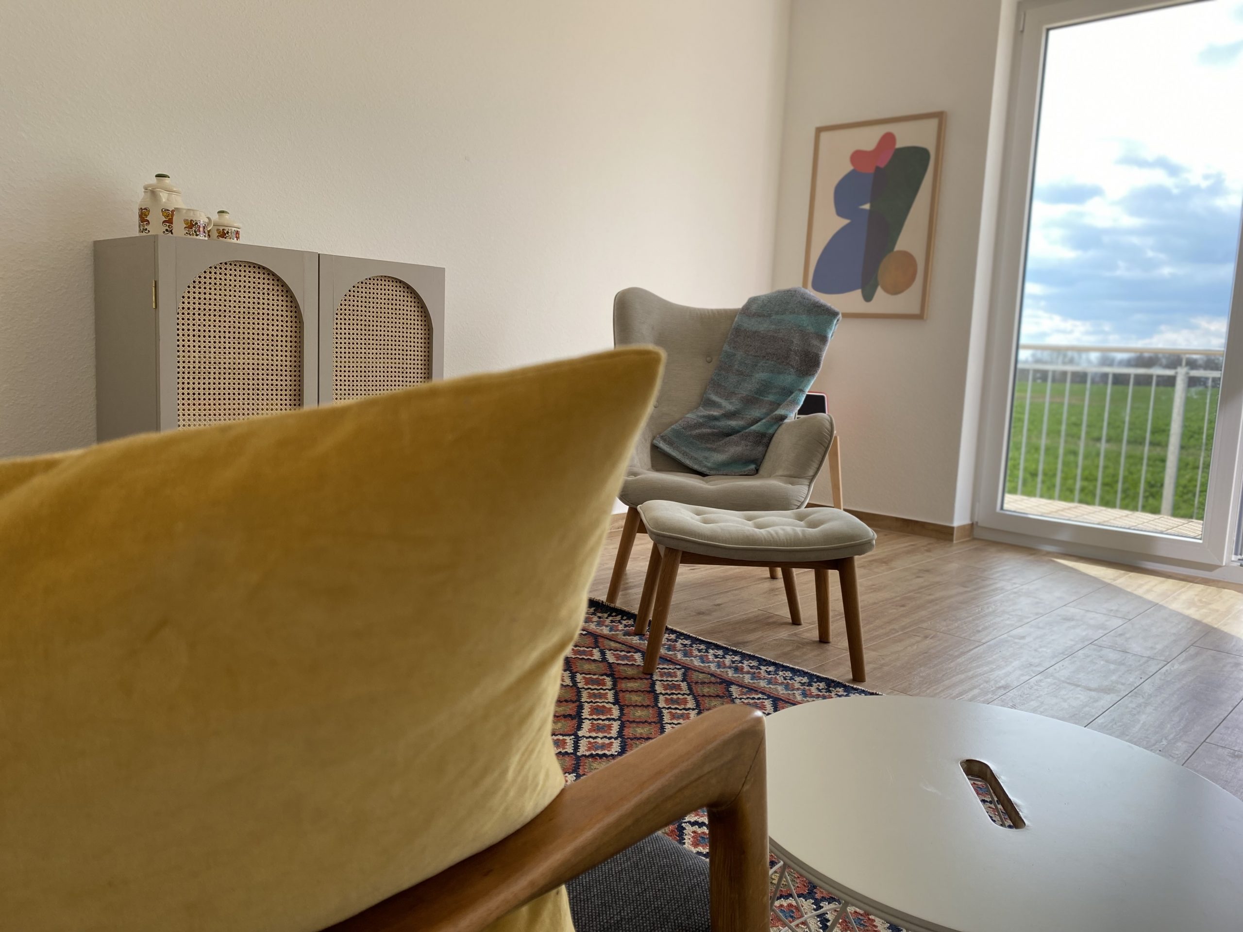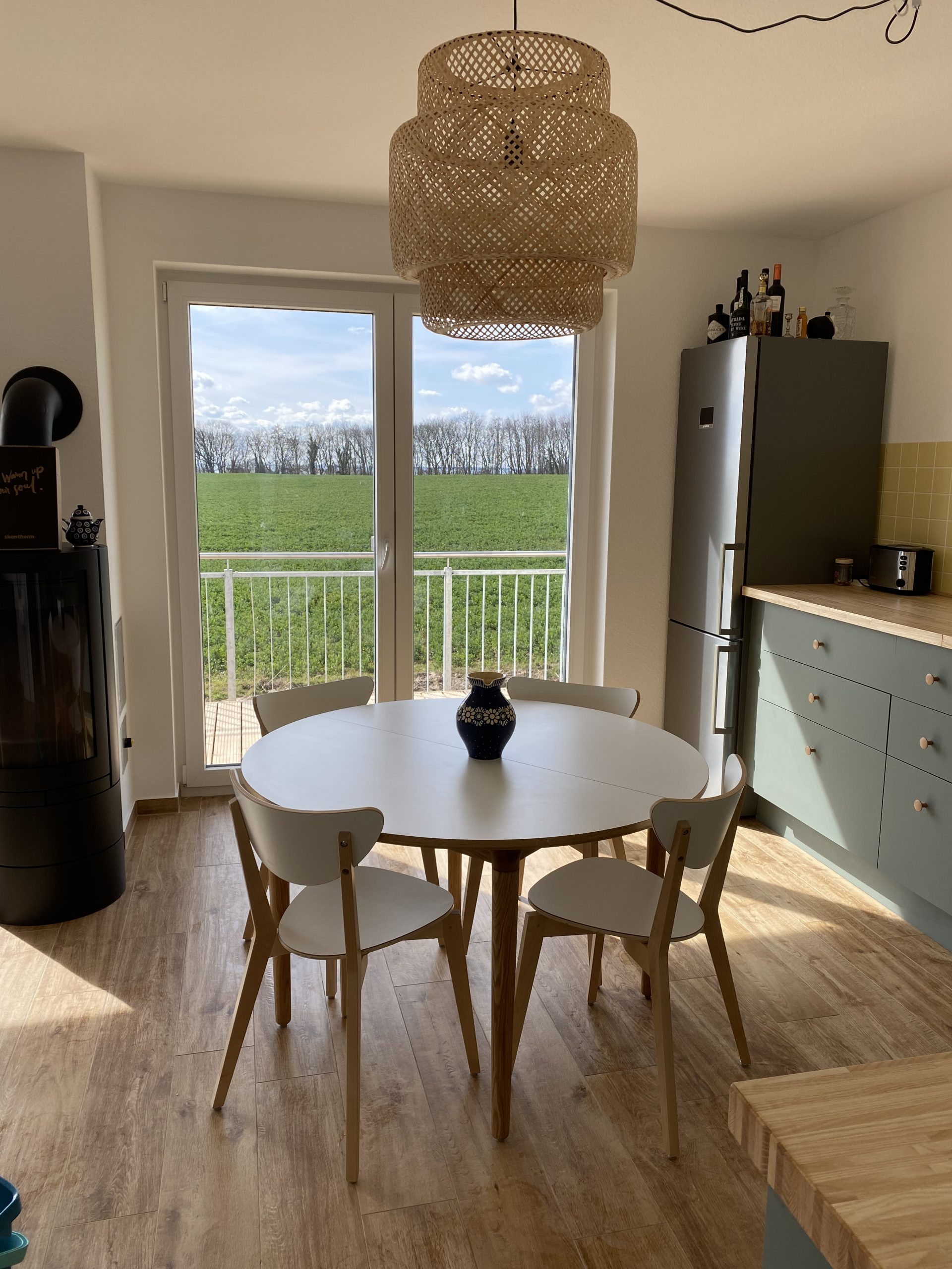 Die Küche ist vollausgestattet mit Herd und Geschirrspüler. Im Badezimmer gibt es eine Dusche. Der Balkon bietet einen tollen Blick auf den Greifswalder Bodden, zudem kann dort gegrillt werden.